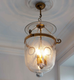 Lantern made of mouth blown glass that has been finely "brilliant cut" with a traditional pattern. The metal work has an antique bronze finish. Please see second image to view the item with brass metalwork. There are 3 no. 60 WATT max. lampholders (We can also supply this lantern with...